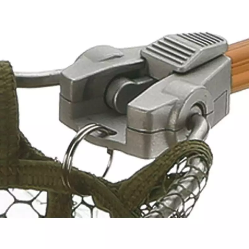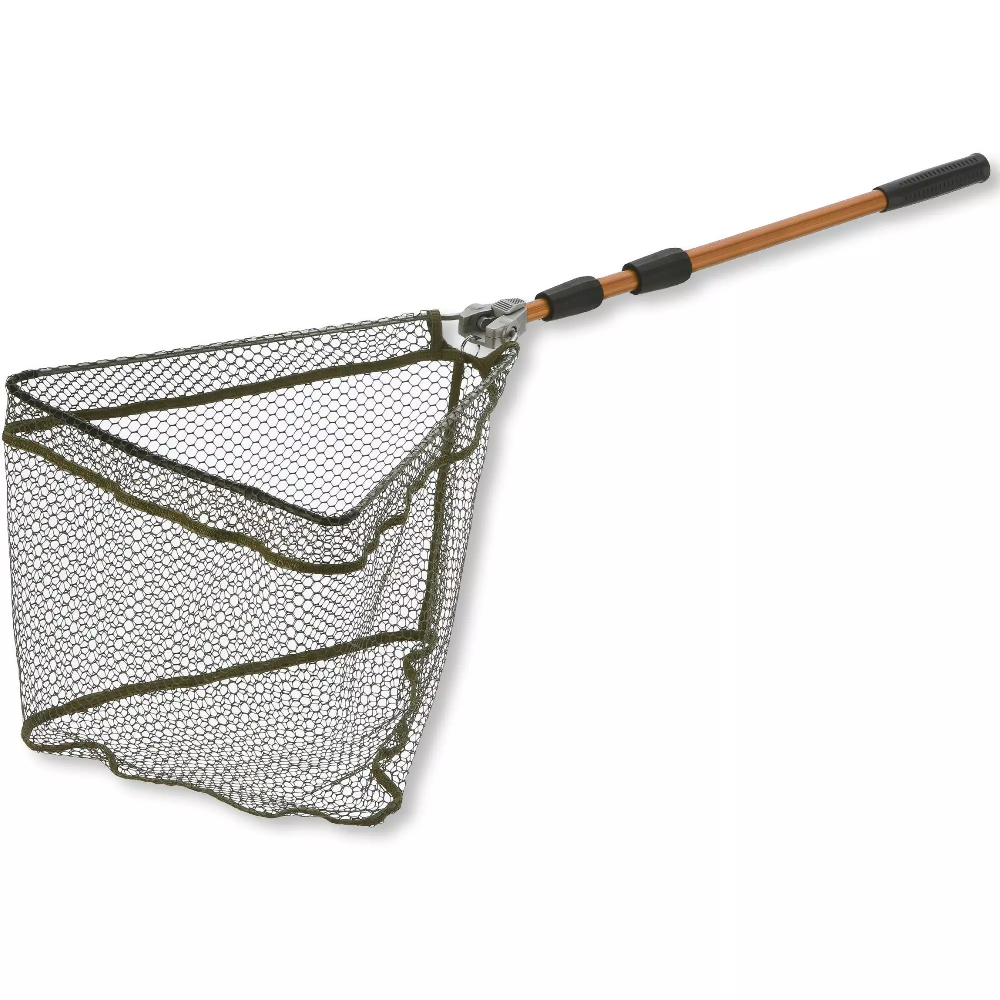 Inexpensive landing net with a functional, stable aluminum joint and anodised telescopic landing net handles.